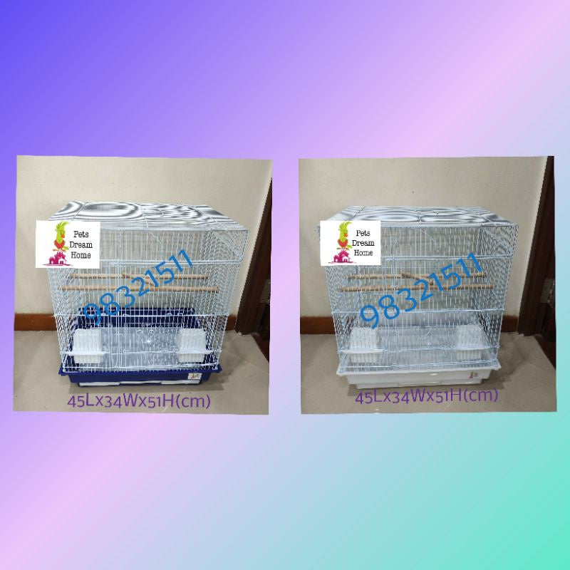 Bird Cage 45Lx34Wx51H(cm) Include 2Feeding Cups, 2Wooden Perches & 1Swing *Comes with Side Openings on both Sides Suitable for Canary/Finch/Puteh/budgie/lovebird/Cockatiel/small size conure/mynah/pigeon or similar size birds only ***Do allow 1 to 3cm due manual measurement