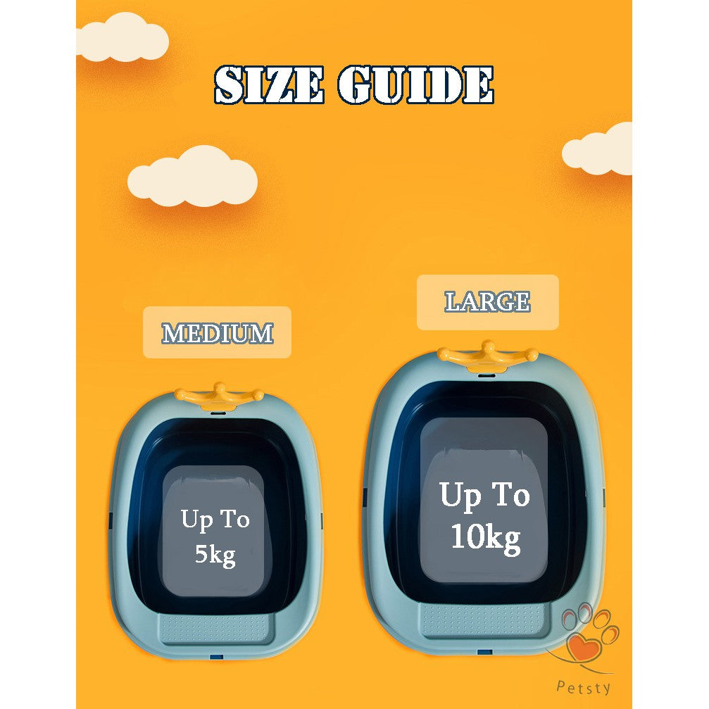 -Litter trapping design -Bigger space, open lid design -Easy to clean -Colours: Green / Blue / Pink ___________________________________________ -Large size: Product size: 51.5(L)* 41.5(W)* 27.5(H)cm Btm base size: 41.5(L)* 33.5(W)* 11.5(H)cm Hold up to: 10kg ___________________________________________ -Medium size: Product size: 43(L)* 35(W)* 23.5(H)cm Btm base size: 50.5(L)* 40.5(W)* 13.5(H)cm Hold up to: 5kg ✨Note: Please allow 1~2cm difference due to hand measurement ________________________________________________ ⚠️IMPORTANT FOR ALL BUYS: Please check every parts before instalment and inform us by clicking the chat button if there is any damage ASAP. parts are damaged during instalment are not refundable and request spare parts might be chargeable.