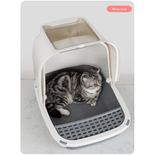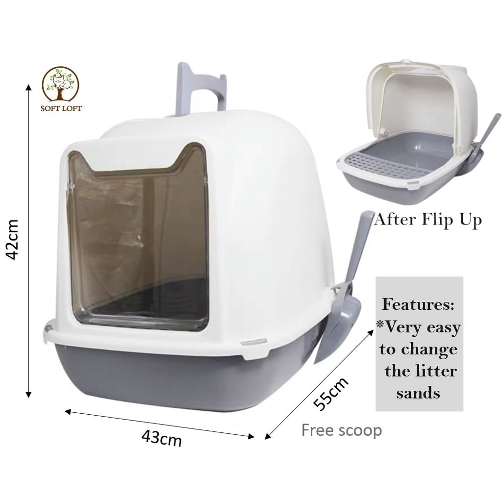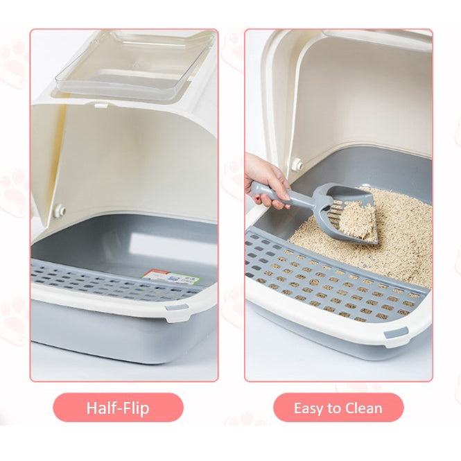 [SG INSTOCK] Large Enclosed Cat Litter Box/ Pet Extra Large Liter Box/Half Flip Door littler box for cat kitten pet