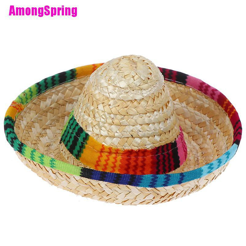 AmongSpring☬ Mini Pet Dogs Straw Hat Sombrero Cat Sun Hat Beach Party Straw Hats Dogs Hat