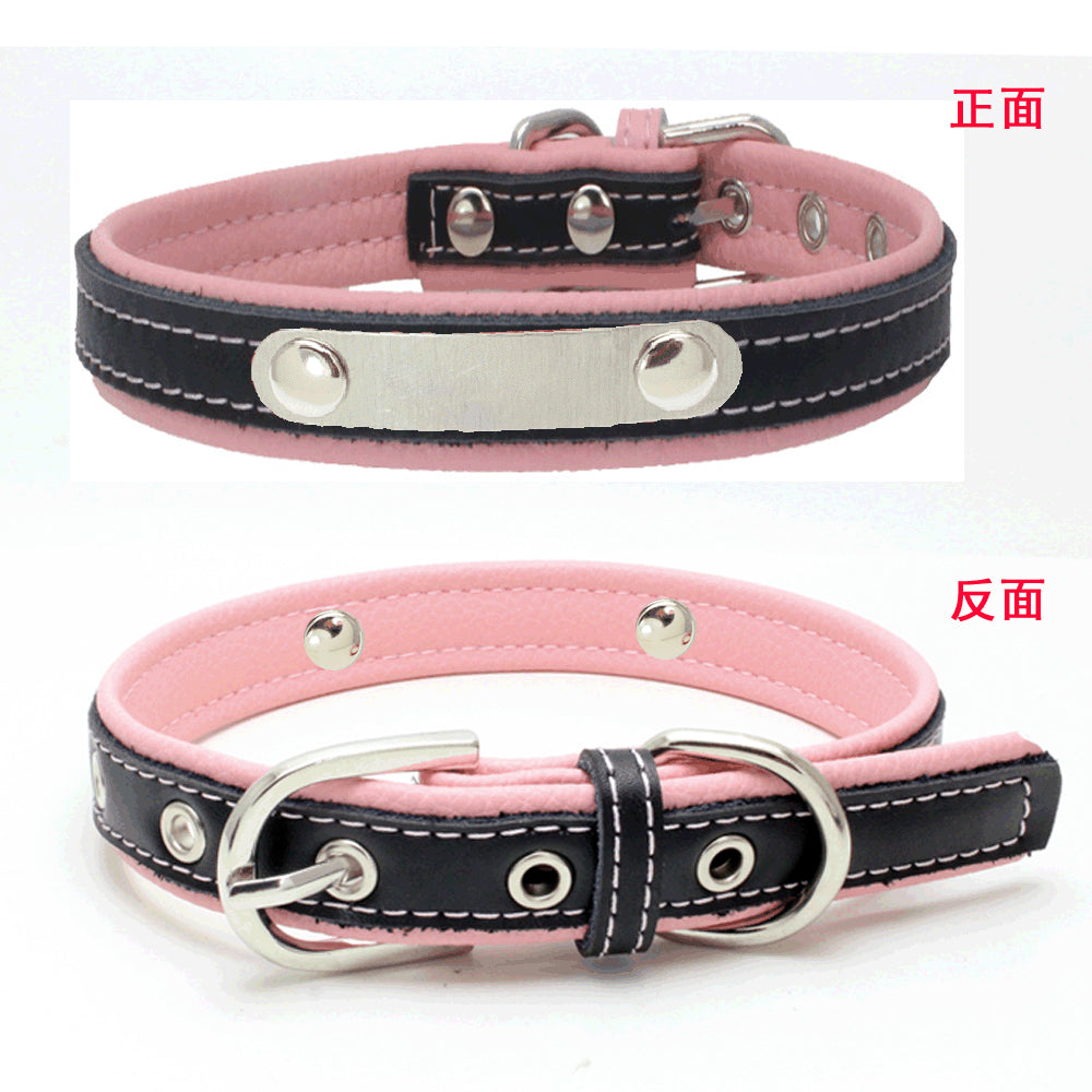 Berry explosion color leather pet collar stainless steel film lettering dog collar cortical traction rope Amazon