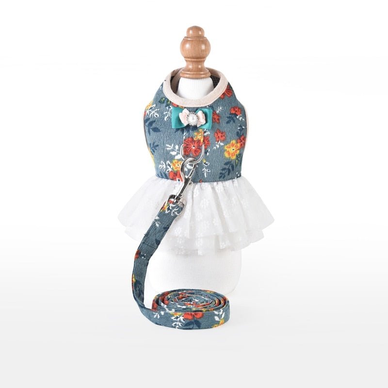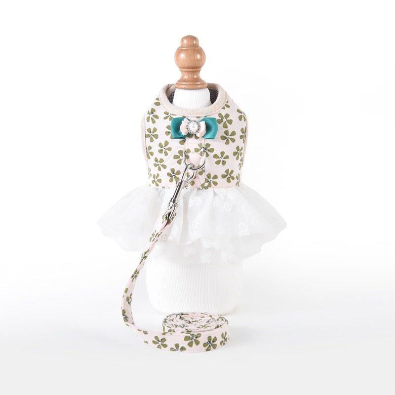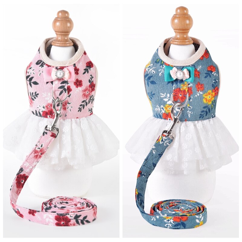 Floral Harness Dresses For A Dog Girl Female Pet Collar Vest Chest Strap Outdoor Walking Puppy Small Animal With Leash Set Cats