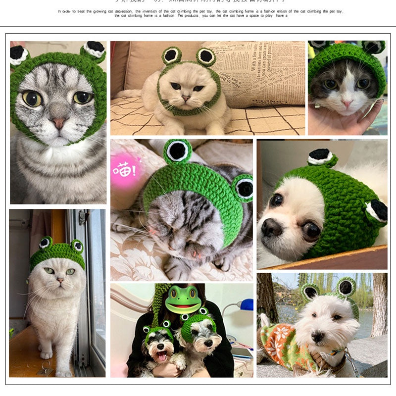 Pet Cartoon Knitted Cat and Dog Hat Cute Frog Shape Headwear